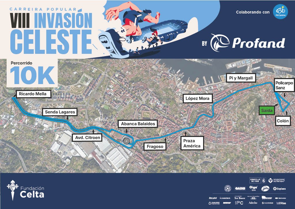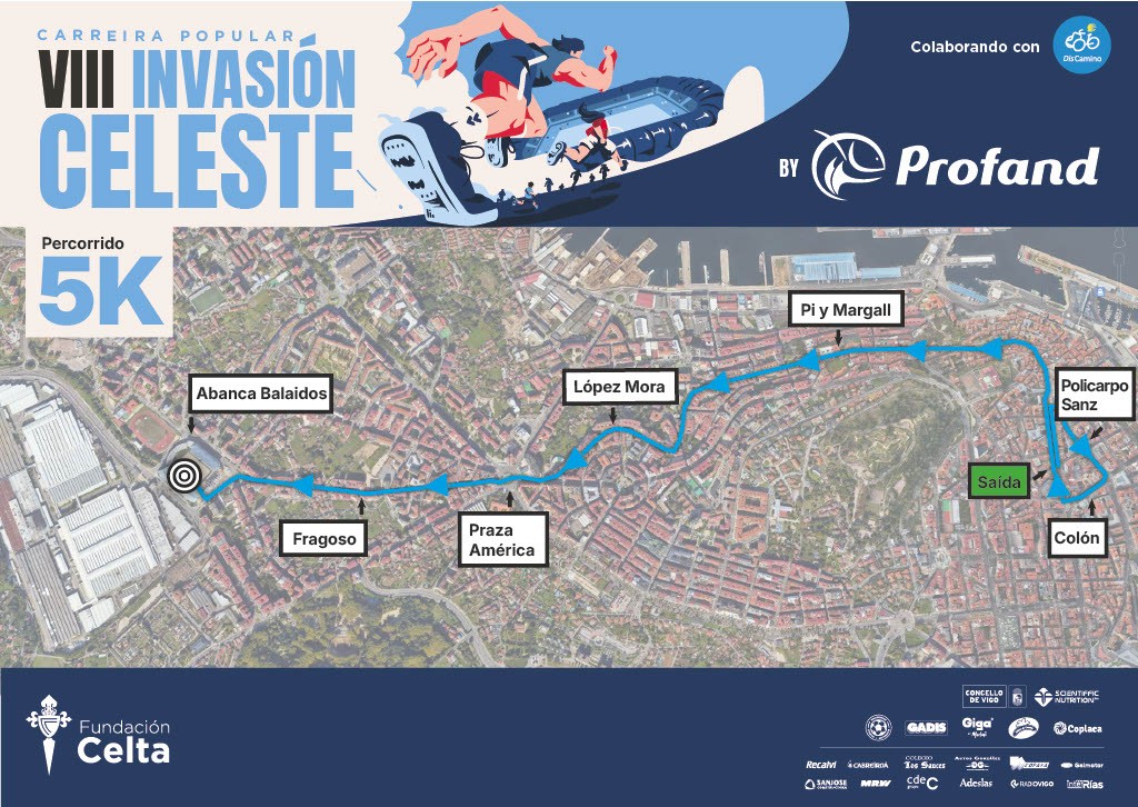 1. A Fundación Celta de Vigo organiza a Carreira Popular da Fundación Celta de Vigo | Invasión Celeste By Profand. Proba que se disputará o vindeiro 23 de marzo do 2025 con saída na Sede do Celta na Rúa Príncipe e meta no estadio Abanca Balaidos.